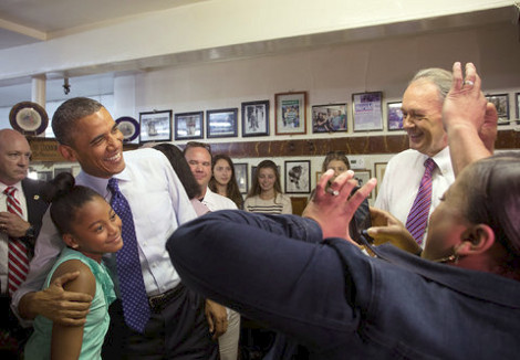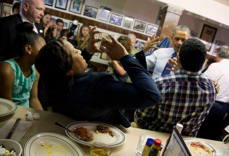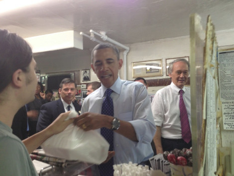 «Περίμενε υπομονετικά στη σειρά μέχρι να ετοιμάσουμε την παραγγελία του -τσίζμπεργκερ με πατάτες- και άφησε ένα χαρτονόμισμα των 20 δολαρίων για έναν λογαριασμό οκτώ δολαρίων» αναφέρει ο Κρις. Και προσθέτει: «Ο πρόεδρος ήταν χαρούμενος, γεμάτος ενέργεια και ανοιχτός στους άλλους, αφού μίλησε με τους πελάτες μας, χαιρέτισε τον καθένα προσωπικά και δέχτηκε να φωτογραφηθεί μαζί τους».