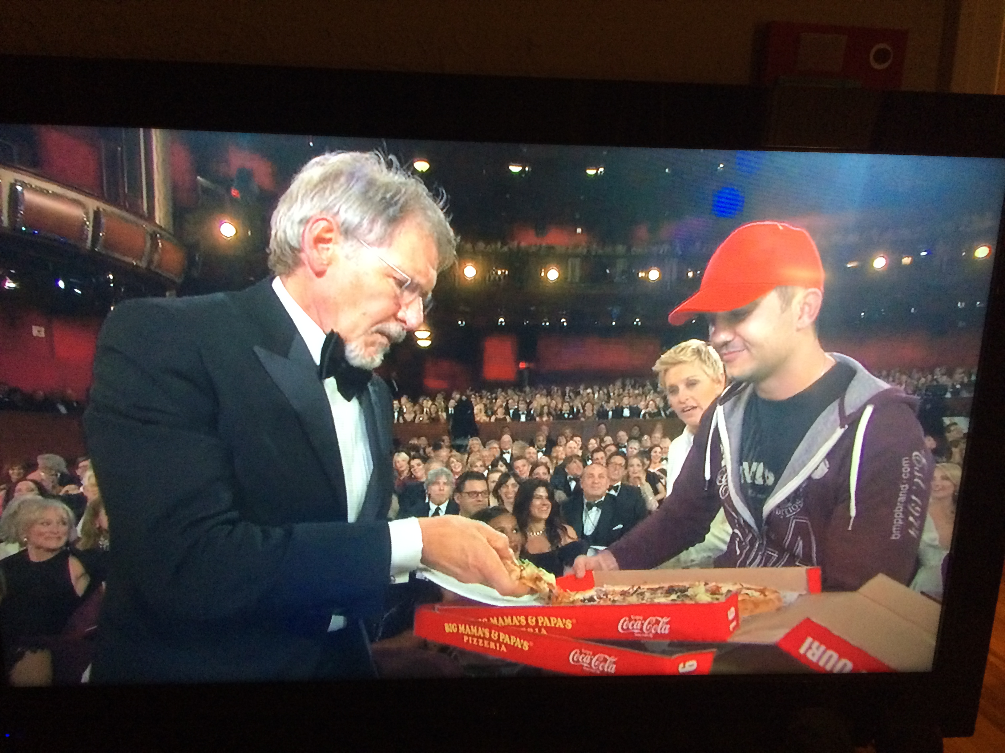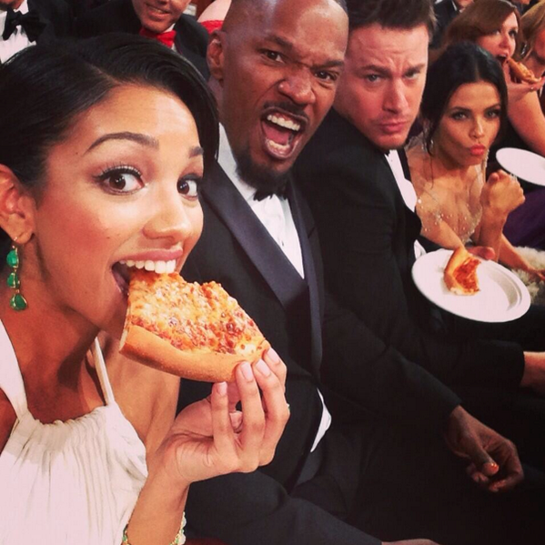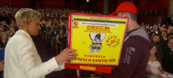 Προνοητική, έδωσε επίσης μικρά χάρτινα πιατάκια και χαρτοπετσέτες. Την πίτσα παρήγγειλε από την διάσημη πιτσαρία Big Mama's & Papa's Pizzeria και φυσικά όλοι διερωτήθηκαν πόσα είχε πάρει η Τζενέρις ή οι διοργανωτές των Οσκαρ, για να παραγγείλουν εκεί.