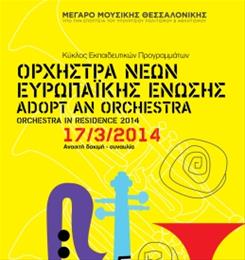 Τον Μάρτιο του 2014 το πρόγραμμα AdoptanOrchestra (Υιοθετήστε μιαν Ορχήστρα) φέρνει στην πόλη της Θεσσαλονίκης την εξαιρετική Ορχήστρα Νέων της Ενωμένης Ευρώπης (European Union Youth Orchestra, EUYO), με μια ριζοσπαστική νέα ιδέα: ότι οι ορχήστρες δεν υπάρχουν μόνο για το συμβατικό κλασικό κοινό αλλά για ολόκληρες πόλεις. Η EUYO θα βρίσκεται, προσκεκλημένη, στο Μέγαρο Μουσικής και θα κάνει ανοιχτές δοκιμές, ενώ θα δώσει κοντσέρτο για νέους, τους οποίους προσκαλεί με τα ακόλουθα λόγια: “ελάτε μαζί μας να ακούσετε σπουδαία μουσική να ερμηνεύεται με πολύ πάθος, σε έναν θαυμάσιο χώρο, στην καρδιά μιας σπουδαίας πόλης”.