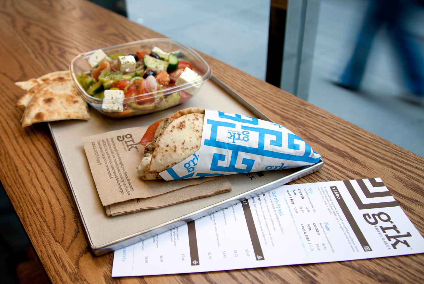 Πέραν των διθυράμβων για το μενού του μαγαζιού και για τις επιλογές που θα μπορεί να προσφέρει στους πελάτες, το άγχος της είναι να καταφέρει να... διδάξει τους αναγνώστες πως θα προφέρουν την κλασική λέξη «γύρος». Έτσι την γράφει όσο πιο απλά γίνεται (Yeero) για να καταφέρουν να την προφέρουν.