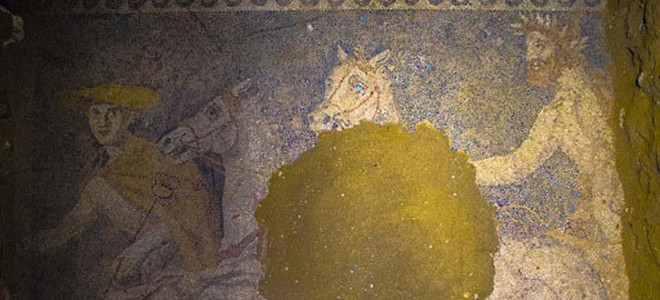 Όπως σημειώνει το άρθρο, «όσο οι ειδικοί προσπαθούν να δουν την καρδιά αυτής της περίπλοκης και λεπτής δομής, οι ανασκαφικές εργασίες αποκάλυψαν ένα τεράστιο ψηφιδωτό δάπεδο, μήκους 4,5 και πλάτους 3 μέτρων, γεμάτο μικροσκοπικά μαρμαράκια, λευκά, μπλε, κόκκινα, μαύρα και κίτρινα».