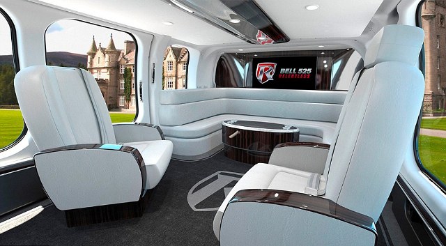 Με μια άνετη κι ευρύχωρη καμπίνα 8,2 τετραγωνικών μέτρων, που μπορεί να χωρέσει μέχρι και 20 επιβάτες, το ελικόπτερο υπερπολυτελείας Bell 525 Relentless απευθύνεται μόνο σε όσους δυσκολεύονται να φανταστούν τον εαυτό τους να μετακινούνται με κάτι λιγότερο πολυτελες.
