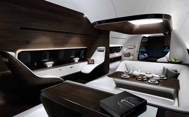 Η αυτοκινητοβιομηχανία ένωσε τις δυνάμεις της με την αεροπορική Lufthansa Technik με στόχο τη δημιουργία ιδιωτικού τζετ για VIP που διαθέτει ξύλινη επένδυση στο δάπεδο, άνετους καναπέδες, δερμάτινα ανακλινόμενα καθίσματα και ακόμα κι ένα διπλό κρεβάτι.