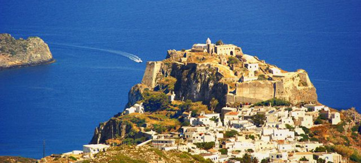 τα δρομάκια της οδηγούν στο ενετικό κάστρο μια μια ονειρική θέα προς τη Χύτρα,