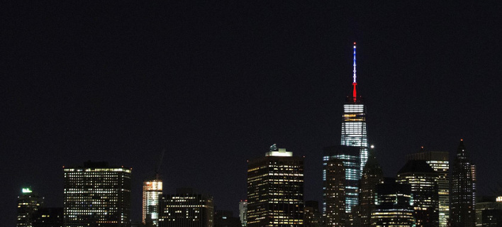 Με μπλε, λευκό και κόκκινο «βάφτηκε» ο οβελίσκος στην κορυφή του One World