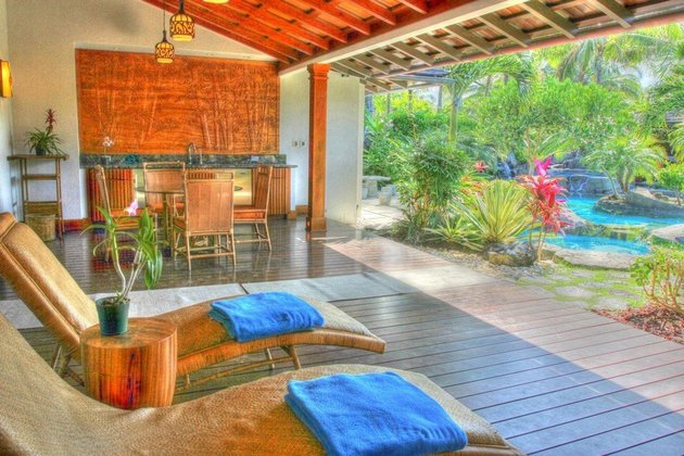 Εξίσου εντυπωσιακή και τροπική με το μέρος είναι και η βίλα που φιλοξενεί την