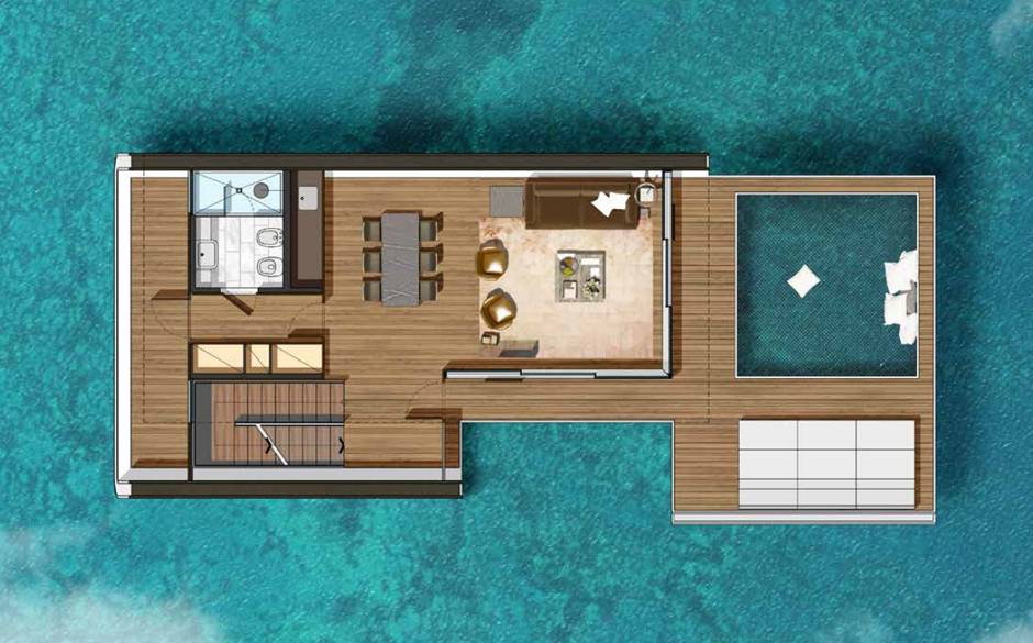 υπνοδωμάτια και δύο μπάνια. Και παρότι οι κατασκευές είναι πλωτές, οι