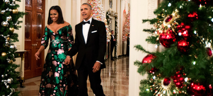 Φορώντας ένα εντυπωσιακό μακρύ φόρεμα με έντονο ντεκολτέ, η Μισέλ Ομπάμα