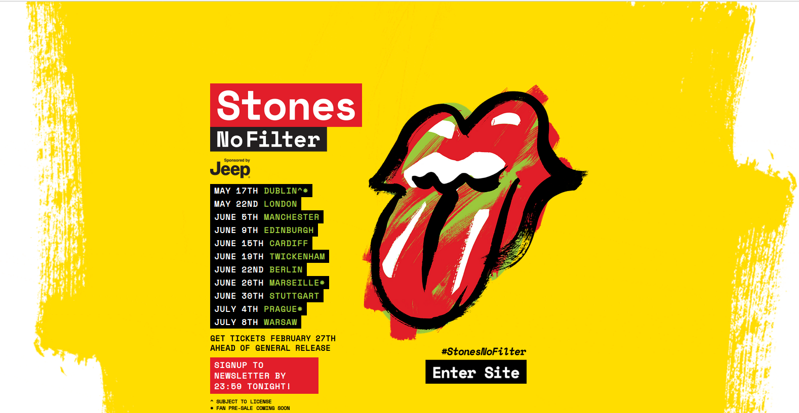 Το πρόγραμμα της περιοδείας Stones-No Filter (χωρίς φίλτρο) προβλέπει οι