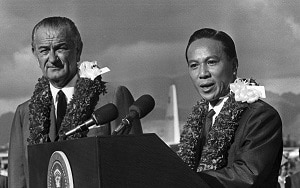 On July 18, 1968, U.S. President Lyndon Johnson meets with South Vietnamese President Nguyen Van Thieu in Honolulu to discuss the Vietnam War. Johnson affirms the U.S. commitment to defending South Vietnam from communist insurgents and the North Vietnamese military. The two leaders also agree to a policy of “Vietnamization” of the war, meaning the South’s military would gradually take on greater responsibility in the conflict, allowing the U.S. to scale back its involvement.