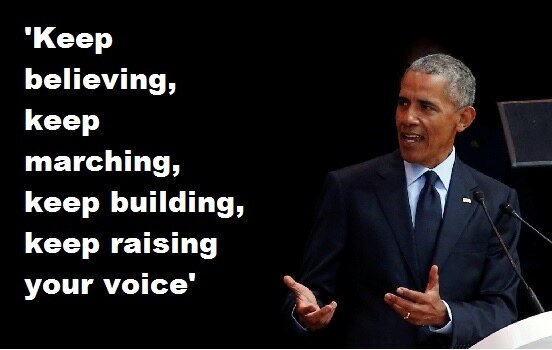 South Africans engaged in charity events Wednesday to mark the 100th anniversary of the birth of Nelson Mandela, the nation’s first black president. Yesterday, Barack Obama, the first black U.S. president, delivered this year’s Nelson Mandela memorial lecture, contrasting the progress and equality brought about by leaders like Mandela with what he called today’s “strange and uncertain” politics.