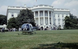 On July 12, 1957, Dwight D. Eisenhower becomes the first US president to ride in the latest advance in aviation technology — the helicopter. It is the president himself who suggests using the new machine for short trips to and from the White House. (Photo: President Eisenhower in a helicopter on the White House Lawn, on July 12, 1957.) |