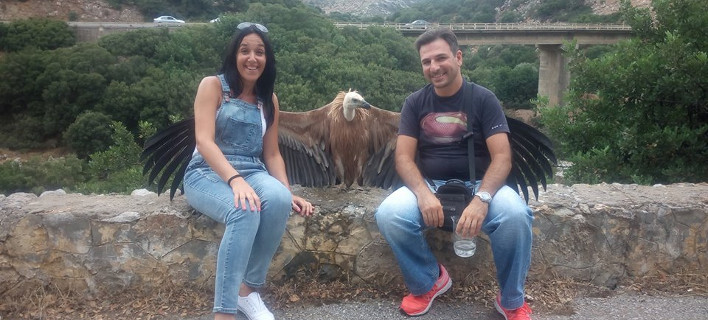 Ενας γυπαετός έγινε... φίλος με ένα ζευγάρι στην Κρήτη.