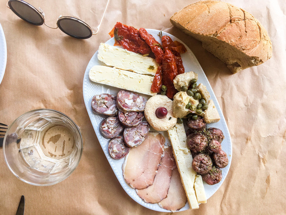Το γεύμα που έφαγα εδώ, με ντόπια λουκάνικα και τυρί, μαριναρισμένες αγκινάρες,