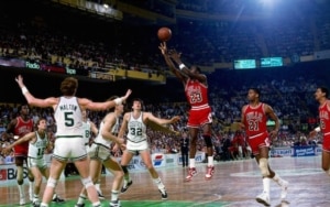 On April 20, 1986, Chicago Bulls basketball star Michael Jordan scores 63 points in a playoff game against the Boston Celtics. It remains the most points scored in a postseason game. Despite the performance, the Bulls lost in double overtime. The Celtics swept the Bulls in the three-game series and went on to win the NBA championship. Jordan would have to wait until 1991 to win the first of his six championships.