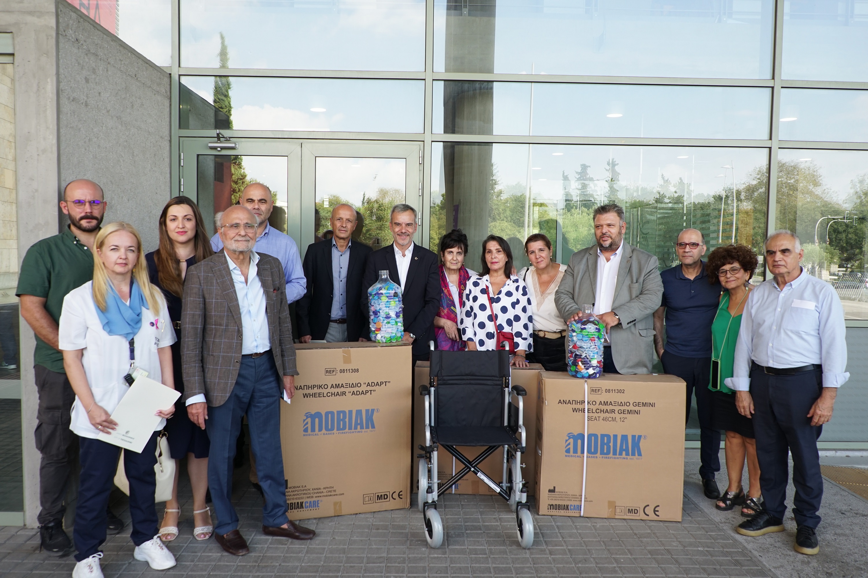 Αναπηρικά δύο αμαξίδια έλαβαν τα νοσοκομεία Αγ. Δημήτριος, Αγ. Παύλος, ΑΧΕΠΑ, Γ. Γεννηματάς, Θεαγένειο, Ιπποκράτειο, Παπαγεωργίου, Παπανικολάου και από ένα το Κέντρο Υγείας 25ης Μαρτίου, το Πανεπιστήμιο Μακεδονίας και η Πολιτιστική Αδελφότητα Μεροπαίων Πωγωνίου Ιωαννίνων.