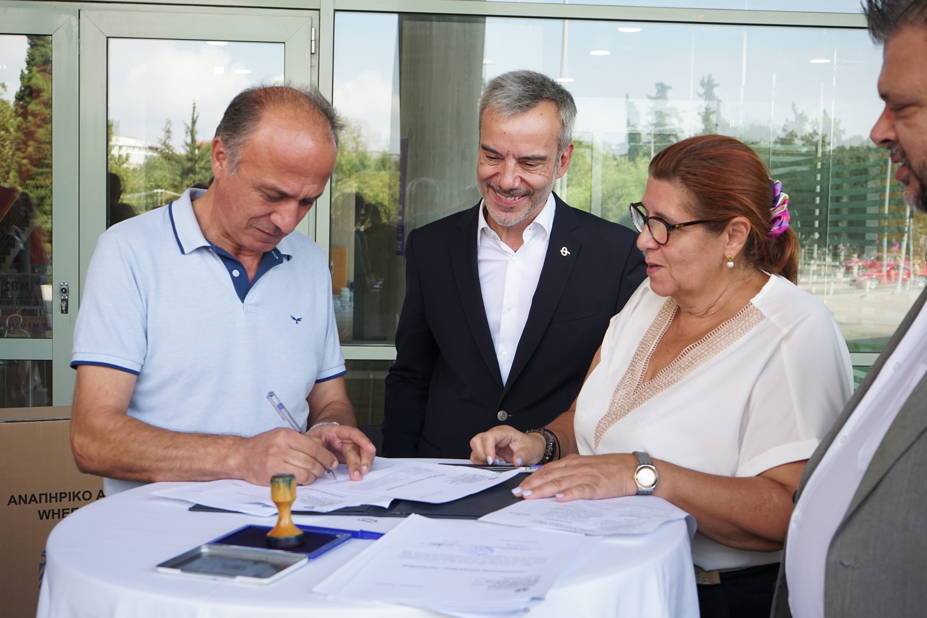 «Είμαι περήφανος και χαρούμενος για το πανεπιστήμιό μας που συμμετέχει στη δράση της ανταποδοτικής ανακύκλωσης και στο πλαίσιο αυτό παραλαμβάνουμε σήμερα αυτό το αμαξίδιο. Είναι χαρακτηριστικό παράδειγμα συνεργασίας της τοπικής αυτοδιοίκησης και της Τριτοβάθμιας Εκπαίδευσης. Μπορούμε να συνεργαστούμε και να κάνουμε δράσεις με κοινωνικό αντίκτυπο», σημείωσε ο Αντιπρύτανης Οικονομικών Υποθέσεων και Υποδομών Πανεπιστημίου Μακεδονίας Ιωάννης Ταμπακούδης.