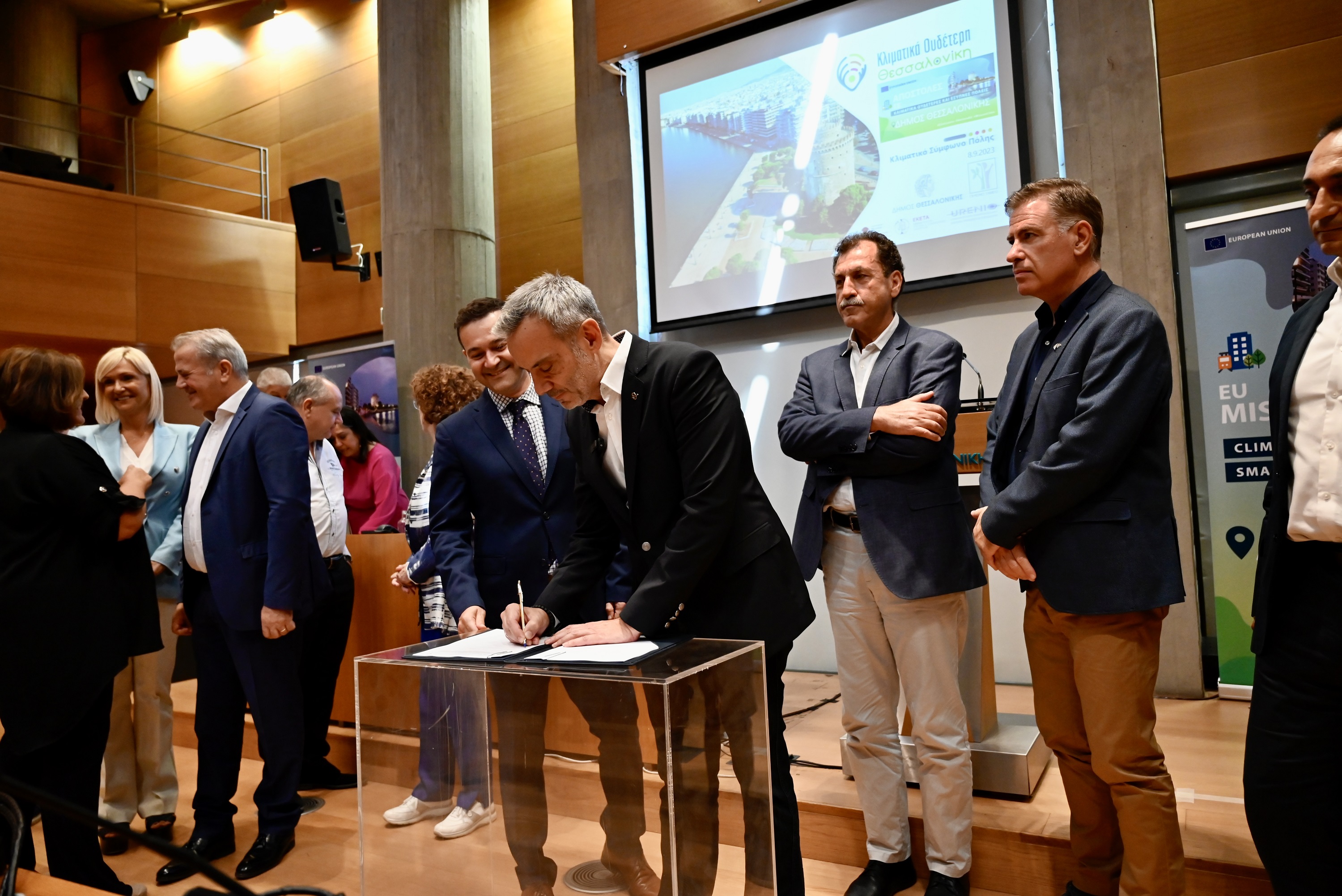 Η υπογραφή του Κλιματικού Συμφώνου, που υλοποιείται στο πλαίσιο της συμμετοχής της Θεσσαλονίκης στην Ευρωπαϊκή Αποστολή για τις «100 Κλιματικά Ουδέτερες και Έξυπνες Πόλεις έως το 2030», πραγματοποιήθηκε κάτω από τη σκιά των τραγικών γεγονότων στη Θεσσαλία.