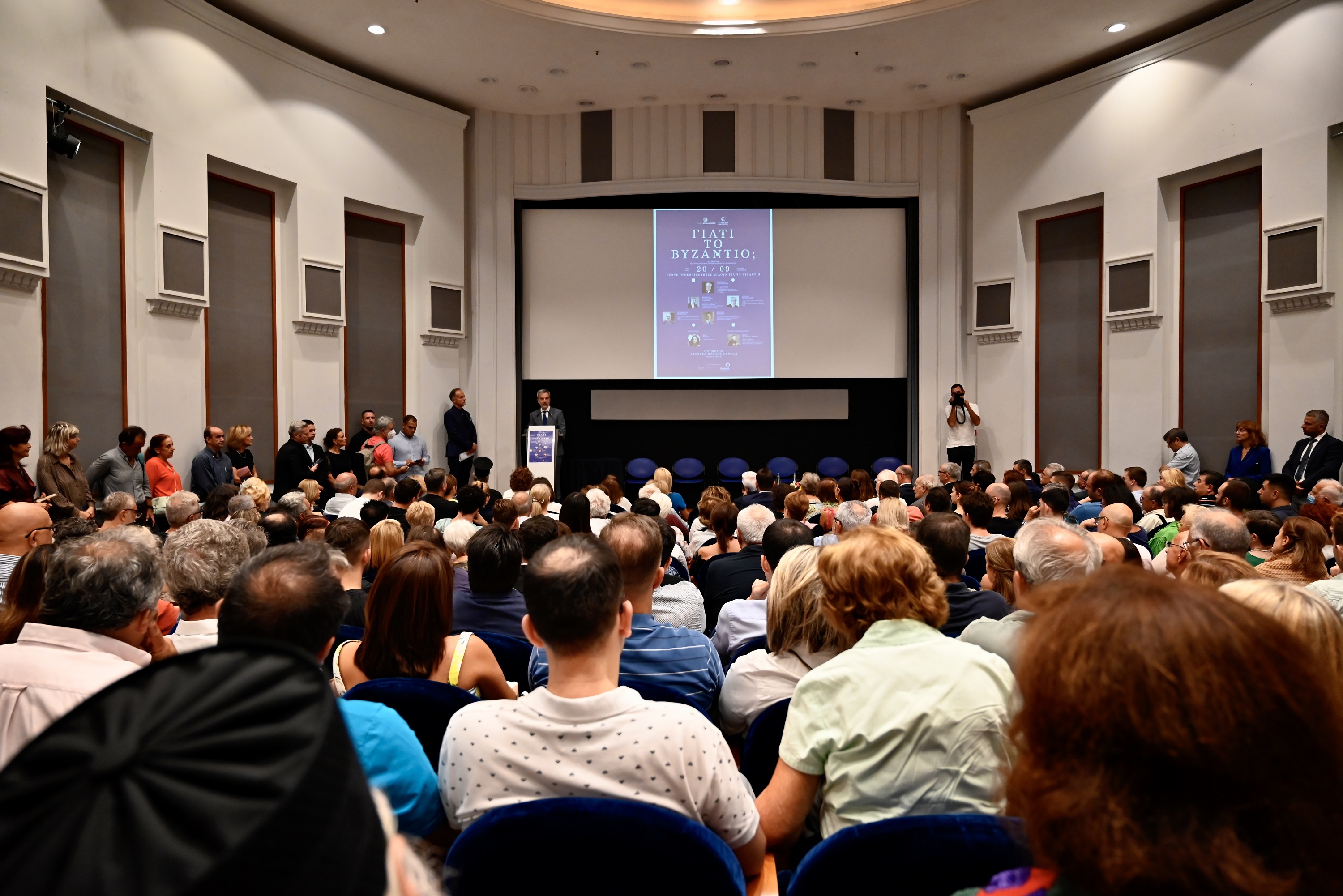 «Κάθε φορά που έρχομαι στη Θεσσαλονίκη νιώθω αυτό το ιερό δέος του Έλληνα που ξαναβρίσκει τις ρίζες του», δήλωσε συγκινημένος ο τέως Πρόεδρος της Δημοκρατίας Προκόπης Παυλόπουλος. «Θέλω να σας παρακαλέσω εσάς και τις γενιές που έρχονται και εσείς μπορείτε να τις διδάξετε, εσείς Θεσσαλονικείς μη συμβιβαστείτε ποτέ με την καθημερινότητα και τη λησμονιά. Πρέπει να κρατήσετε βαθιά μέσα σας αυτό που η Θεσσαλονίκη είναι. Αυτό που εκπροσωπεί, αυτό που ζείτε εδώ που περπατάτε σε κάθε δρόμο. Στην Εγνατία, στην Αψίδα του Γαλέριου, στα μνημεία. Εκεί που η συμβασιλεύουσα συνέδεε την παλιά με τη Νέα Ρώμη», σημείωσε πριν προχωρήσει στην ομιλία του για την επιρροή του Βυζαντίου στη σύγχρονη νομοθεσία. «Κάποιοι προσπάθησαν να τοποθετήσουν το Βυζάντιο στο Μεσαίωνα. Δεν υπάρχει μεγαλύτερη ιστορική ανακρίβεια, που αγγίζει τα όρια της συκοφαντίας. Η Δύση ήταν εκείνη που διαμόρφωσε το Μεσαίωνα. Η Δύση είχε την Ιερά Εξέταση. Η Δύση έπλεε σε πελάγη αμάθειας, εκβαρβαρισμένης, έως ότου ανθίσει το Βυζάντιο, το οποίο ευθύς εξ αρχής, από την εποχή του Μεγάλου Κωνσταντίνου, ήταν Φως. Φως το οποίο καταύγαζε και τη Βασιλεύουσα και τη Συμβασιλεύουσα» ξεκαθάρισε ο ίδιος.