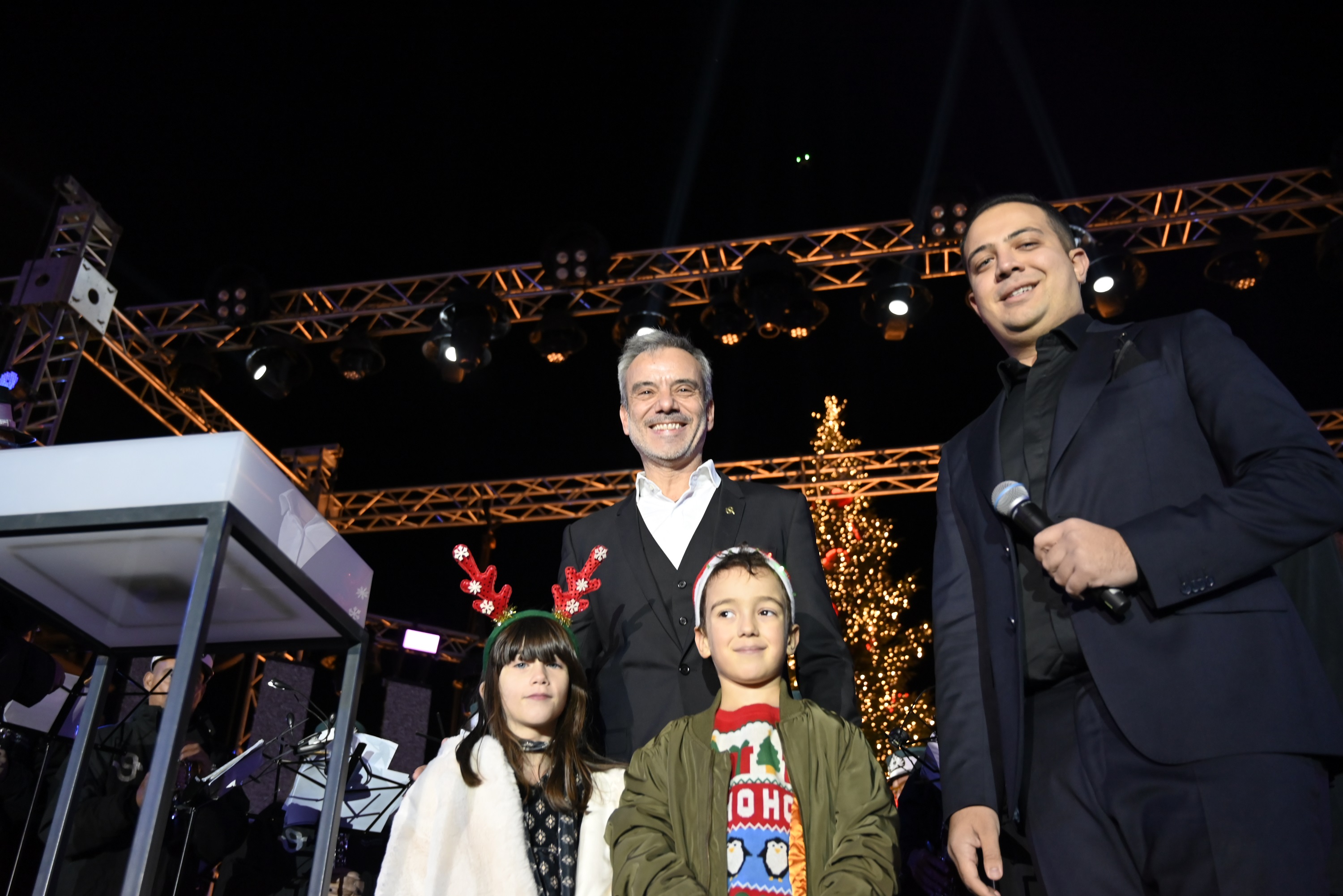 Ο Δήμαρχος Θεσσαλονίκης, που πάτησε το κουμπί, για να ανάψει το δέντρο μαζί με τη μικρή Μαργαρίτα και τον μικρό Διαμαντή, μετέφερε θερμές ευχές για καλές γιορτές και εξέφρασε τις ευχαριστίες του προς τους εργαζόμενους του Δήμου αλλά και προς τους χορηγούς που υποστηρίζουν τις εορταστικές εκδηλώσεις.