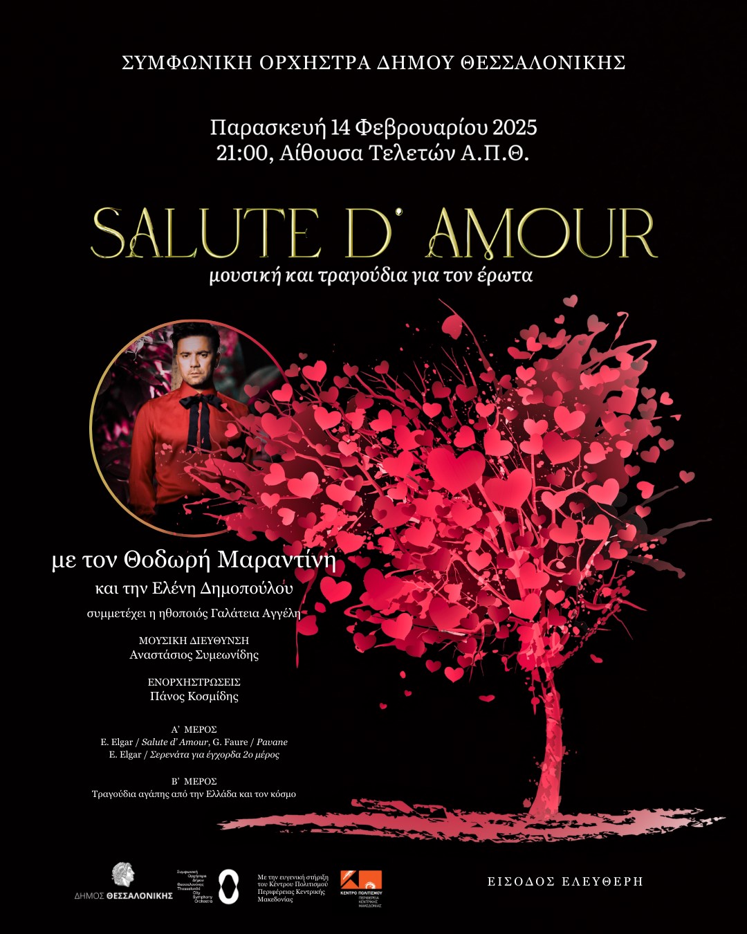 Η Συμφωνική Ορχήστρα σας προσκαλεί ανήμερα της 14ης Φεβρουαρίου σε μια υπέροχη μουσική βραδιά, αφιερωμένη στον έρωτα, στις 9 το βράδυ, στην Αίθουσα Τελετών του Αριστοτελείου Πανεπιστημίου Θεσσαλονίκης.