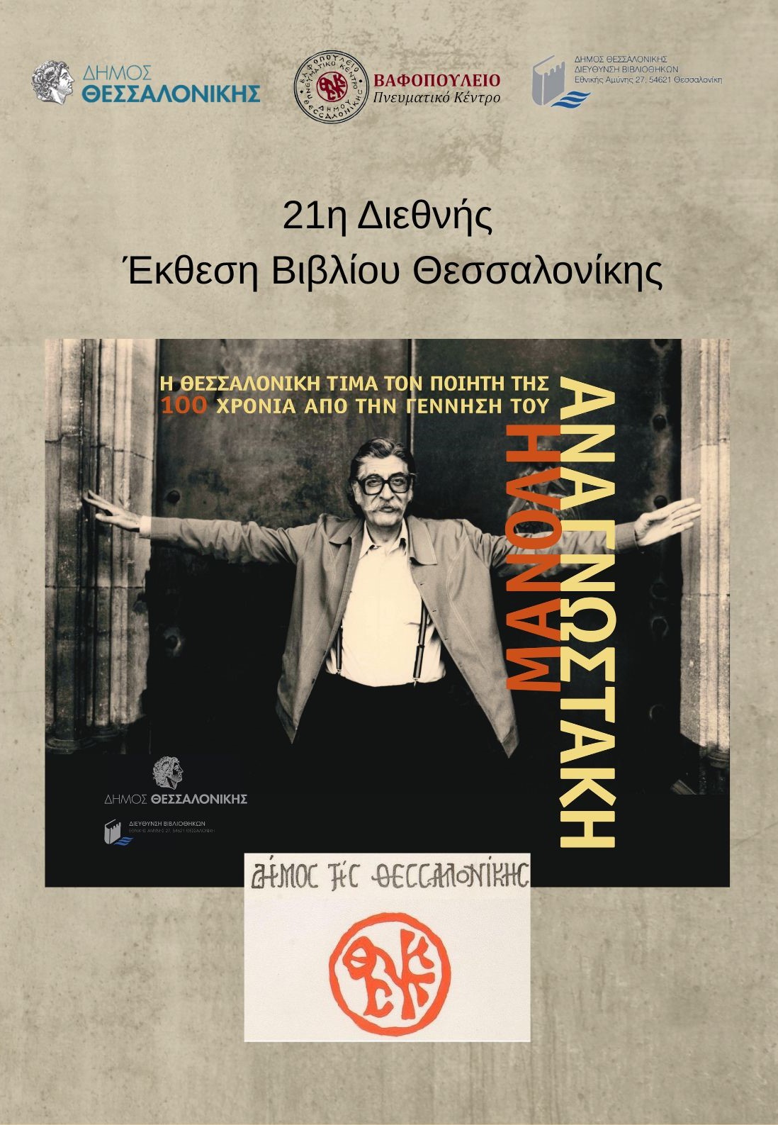 Ο Δήμος Θεσσαλονίκης με αφορμή την επέτειο των 100 χρόνων από τη γέννηση και 20 χρόνων από το θάνατο του Μανόλη Αναγνωστάκη τιμά τον μεγάλο Θεσσαλονικιό ποιητή της πρώτης μεταπολεμικής γενιάς της πόλης με το περίπτερο «Αφιέρωμα στον Μανόλη Αναγνωστάκη» που θα λειτουργεί στο Περίπτερο 15- stand 105 (ΔΕΘ-HELEXPO).