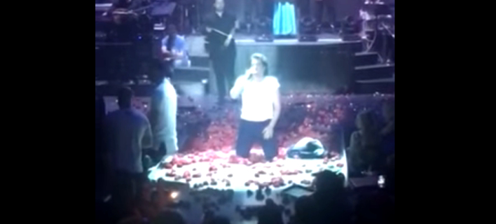 τραγουδιστή να καλεί το κοινό να κάνει ενός λεπτού σιγή.