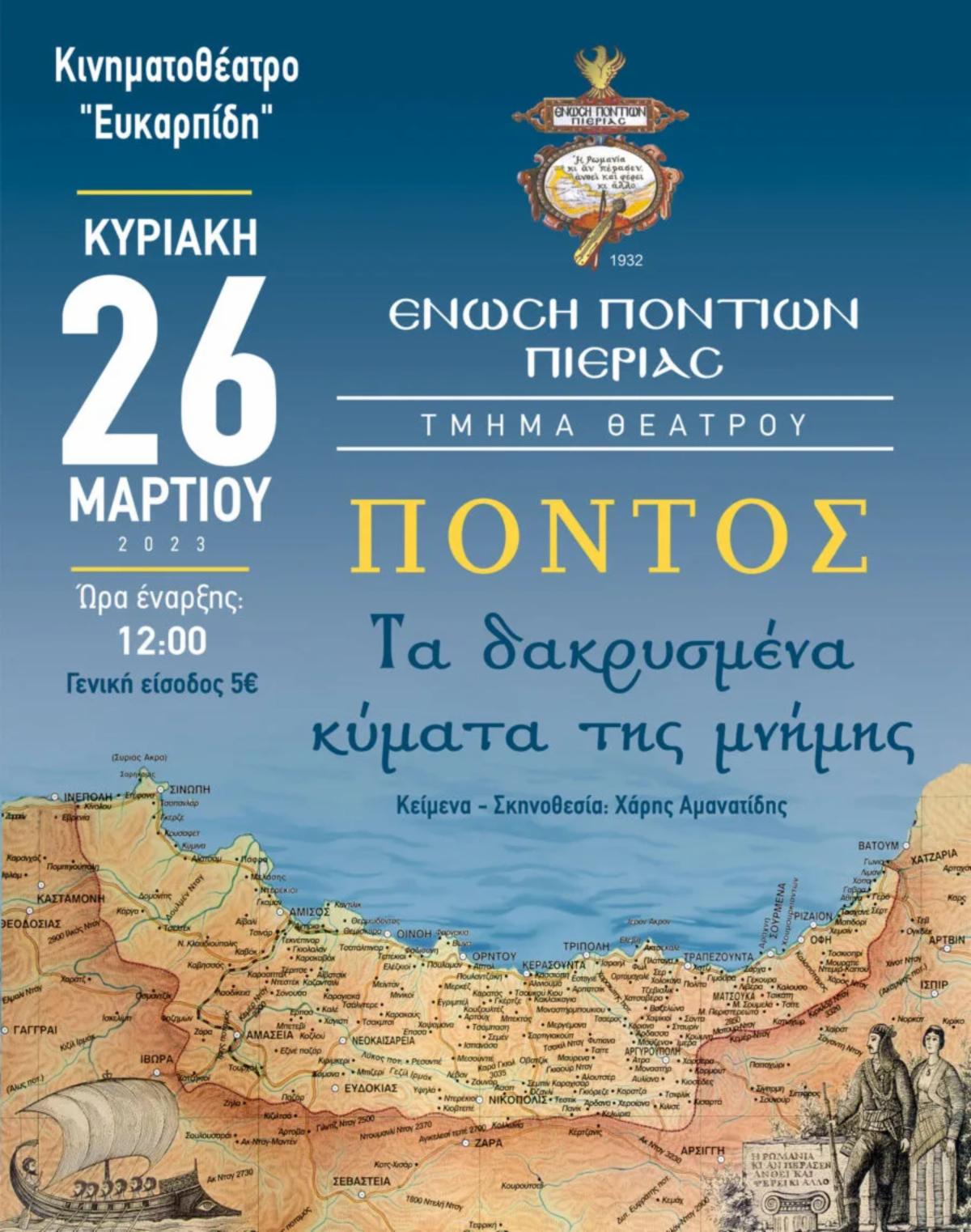 Ένωση Ποντίων Πιερίας | Πρόσκληση στη θεατρική παράσταση «ΠΟΝΤΟΣ Τα δακρυσμένα κύματα της Μνήμης»